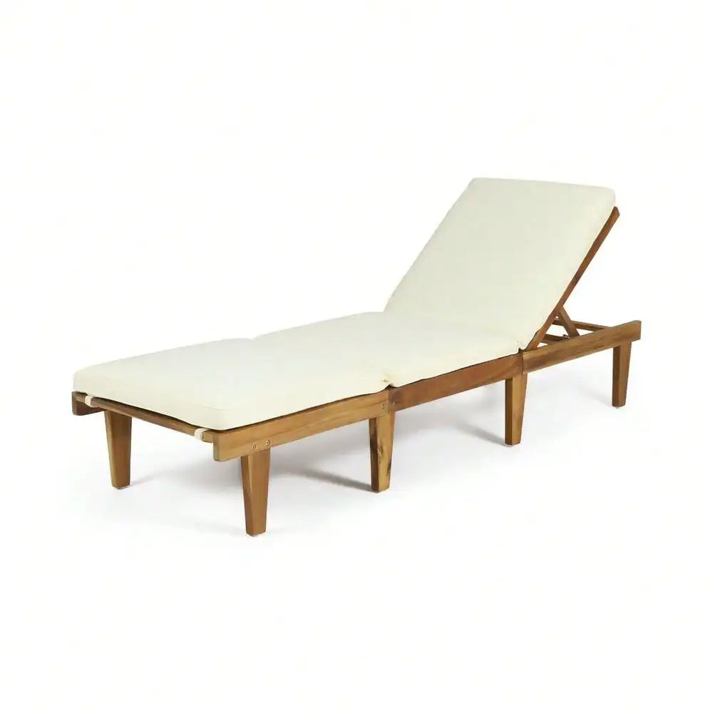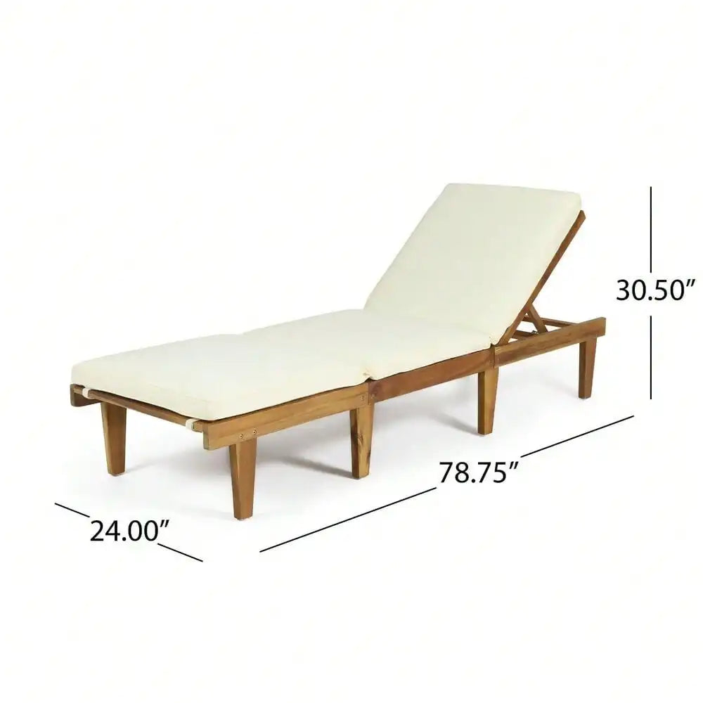 Outdoor Teak Brown Wood Chaise Lounge with Cushion