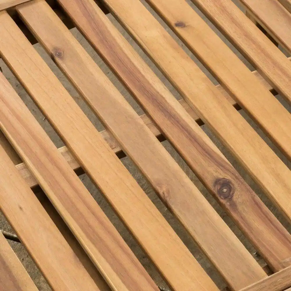 Features: Includes: One (1) Chaise Lounge with Cushion Constructed of Acacia wood Teak Brown in color, compliments most existing decor Assembly required Dimensions/Weight: 24"L x 78.75"W x 32.75"H 43-pounds Note: Decorative accessory not included